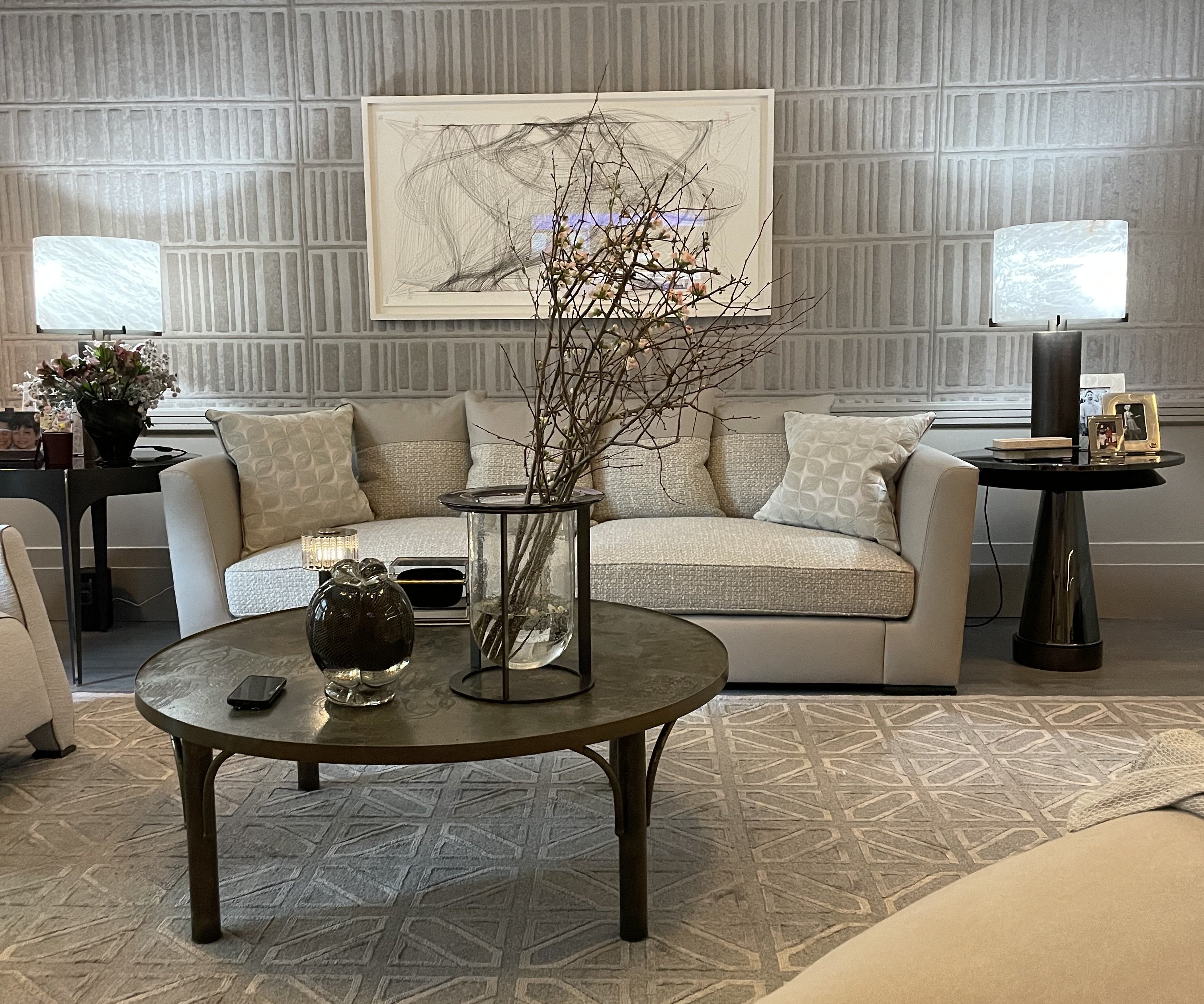 Embroidered Fabric Pillow with Gray Cord Piping - 22 inches squareRegular price $275.00 USDRegular priceUnit price per-